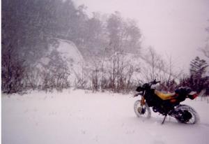 ちなみに、掲載した写真は1997年11月3日に帝釈山林道の中腹で撮影したものです。高度は推定1300mの箇所ですが、路面の積雪は20センチから、ところによっては50センチを越えていました。